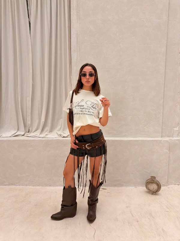 Remera 100% algodón con cuello redondo y corte recto. Talle único. Ideal para looks cómodos y cancheros.