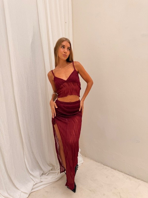Top + falda transparencias, super elevante, contiene tajo y frunce que estilizan la fugura, talle único, va hasta un M y talle 95 de busto.