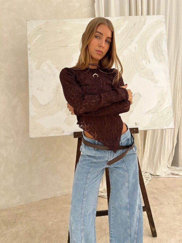 Top mangas largas encaje, super delicado, talle único.